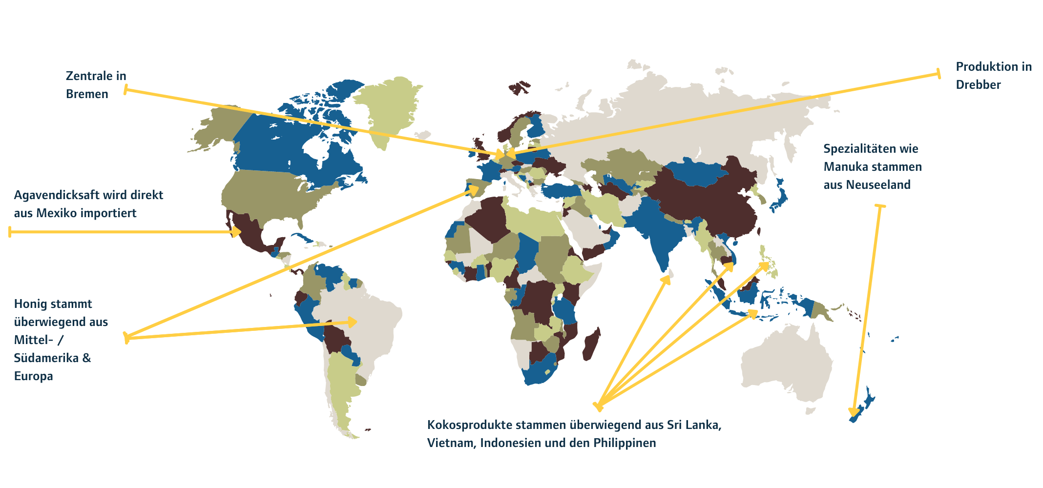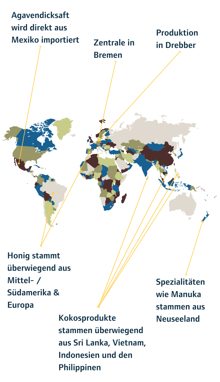 Bereits seit der Gründung des Unternehmens liegt der Schwerpunkt unserer Tätigkeiten in der Produktion von Honigen, Bio-Honigen und alternativen Süßungsmitteln. Wir beziehen die Rohwaren von weltweiten Partnern, verarbeiten und verfeinern diese und füllen sie schließlich entsprechend der Wünsche unserer Kunden ab. Wir können Ihnen flüssige und cremige, nahezu alle Sorten- und Spezialitätenhonige, aber auch vielseitig verwendbare, milde Blütenhonige und Verarbeitungshonig anbieten. Der beste Sonnenblumenhonig kommt aus den Karpaten – selbstverständlich haben wir dort Partner-Imker. Lindenblütenhonig direkt aus Berlin? Wir kennen seit Jahren den perfekten Imker dafür. Unser Sortiment wird durch weitere, natürliche Süßungsmittel wie z. B. Bio-Agavendicksaft direkt aus Mexiko abgerundet. Neu in unserem Portfolio sind unsere vielfältigen Kokosprodukte. Suchen Sie nach hochwertigen Kokosnussprodukten in Großgebinden zur Weiterverarbeitung oder benötigen Sie Ihre Eigenmarke in großen Mengen direkt aus dem Ursprung? Dann sind Sie von jetzt an bei uns genau richtig!